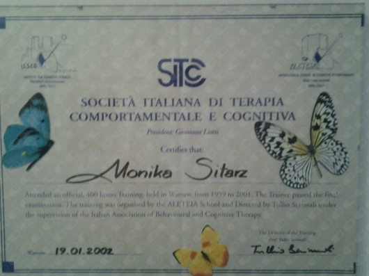 Doświadczenie diagnostyczne zdobyłam w Klinice Psychiatrii Warszawskiego Uniwersytetu medycznego,Centrum Psychoterapii w ramach szpitala ul.Nowowiejska.