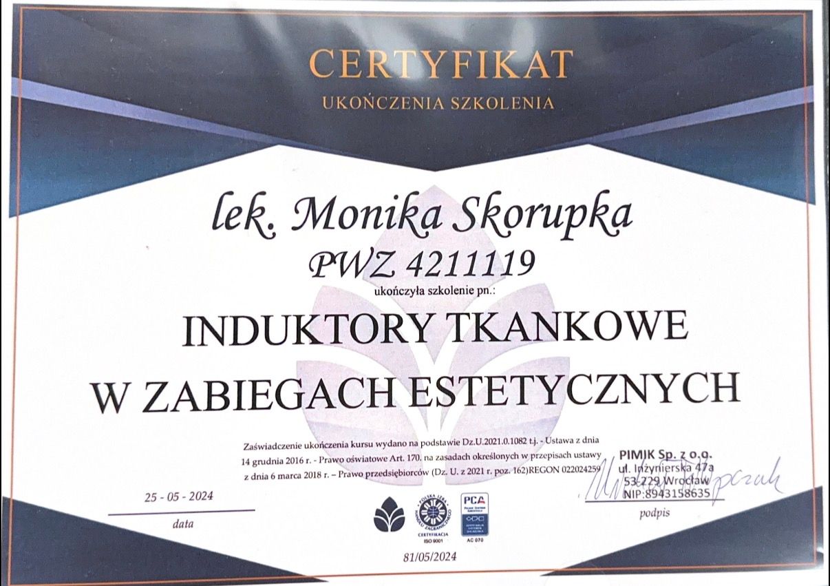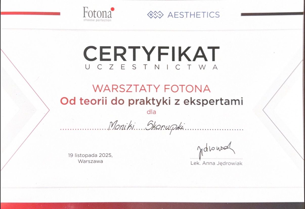 Pani Monika jest bardzo profesjonalna, zabieg wykonany super sumiennie a ja jestem niesamowicie zadowolona z efektu po :) Bardzo polecam i jeszcze raz dziękuję Pani Doktor!