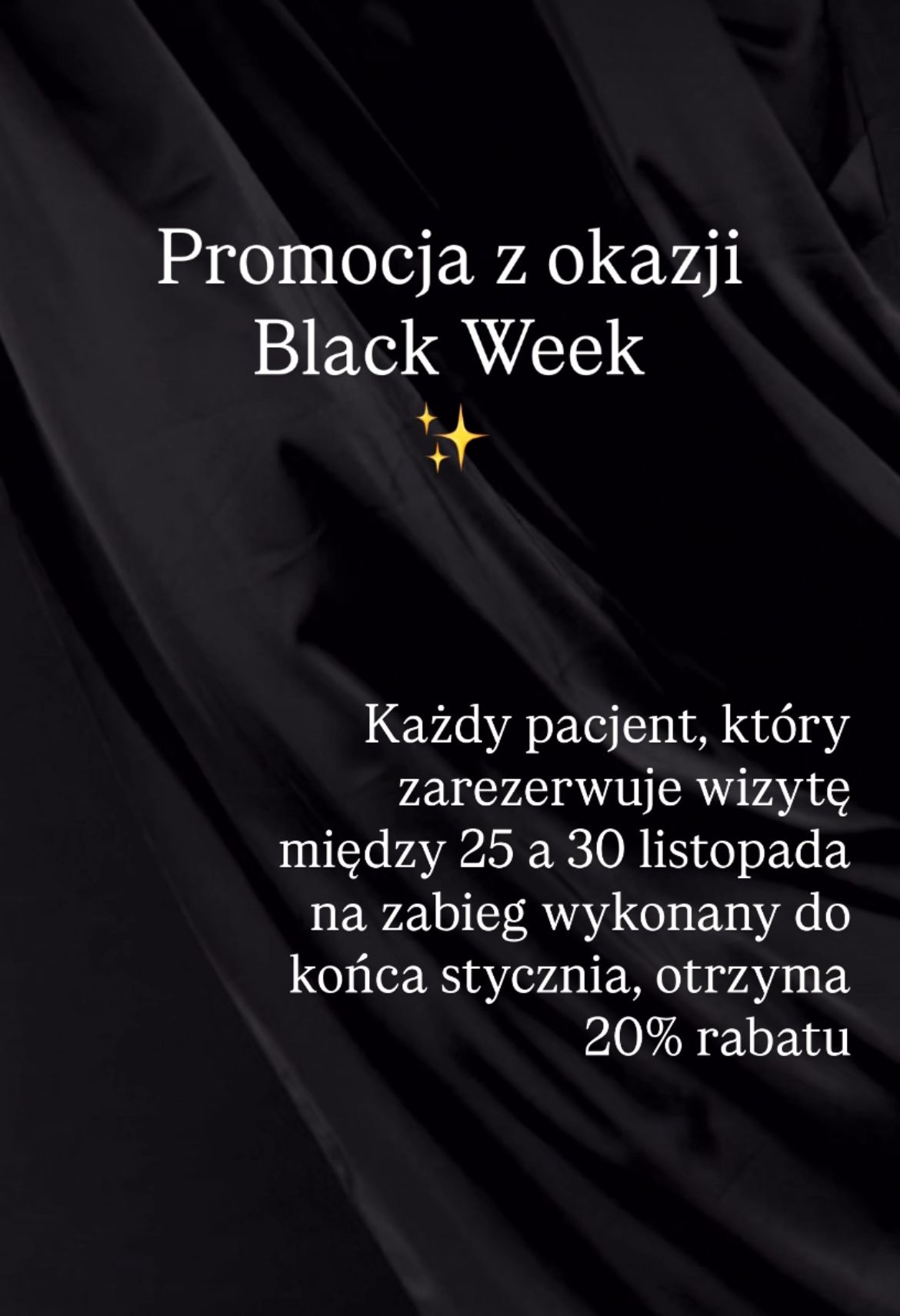 Każdy pacjent, który zarezerwuje wizytę Między 25 a 30 listopada na zabieg wykonany do końca stycznia, otrzyma 20% rabatu.