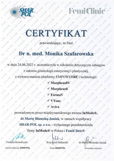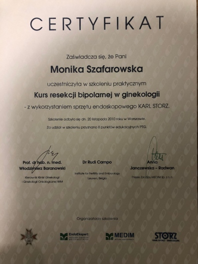 Zapraszamy na konsultacje, badania i zabiegi do dr n. med. Moniki Szafarowskiej, której specjalnością jest leczenie niepłodności. Dr n. med. Monika Szafarowska jest również w trakcie specjalizacji z onkologii ginekologicznej. Zapraszamy do FemiClinic - kliniki dedykowanej Kobietom na każdym etapie życia. FemiClinic to prestiżowe miejsce na mapie Warszawy gdzie przyjmują najwyższej klasy specjaliści, nowoczesne i stylowe, dostosowane do potrzeb Pacjentów o najwyższych oczekiwaniach. Wiele pozytywnych opinii potwierdza, że oferujemy usługi na najwyższym poziomie.