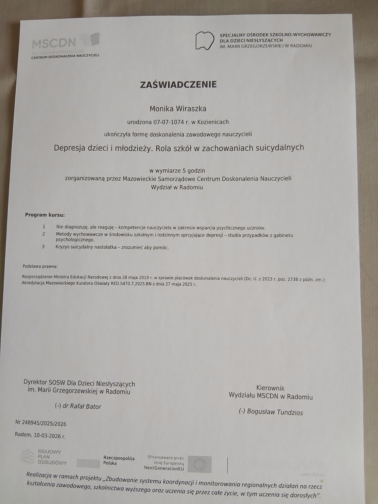Polecam Panią psycholog Monikę Wiraszkę.