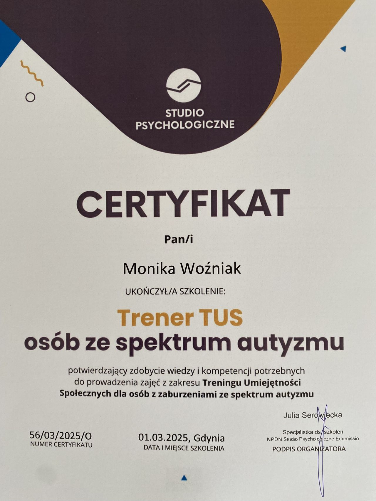Duże zaangażowanie, życzliwość i empatia ze strony pani Moniki. Przyjazna atmosfera. Polecam