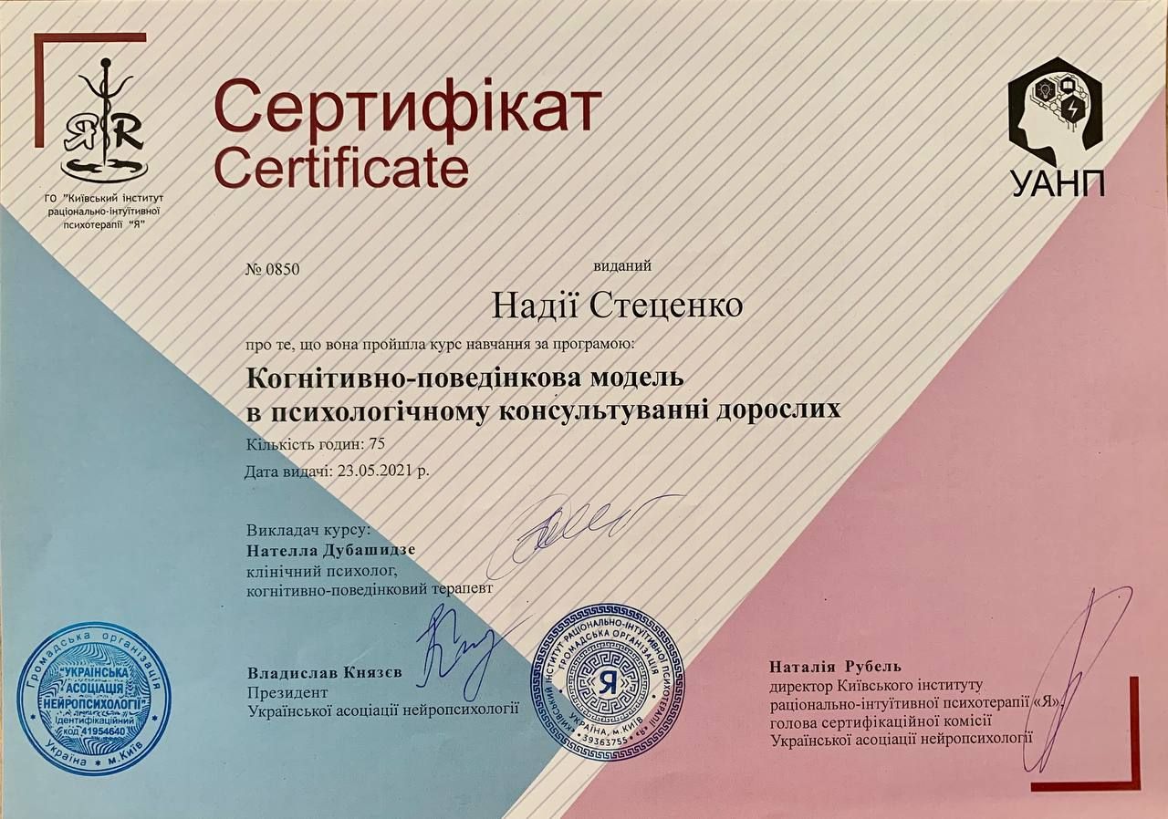 Я працюю з дорослими. Консультації відбуваються українською або російською мовами.