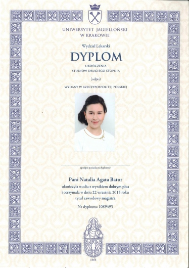 Jestem absolwentką studiów na kierunku Dietetyka Wydziału Lekarskiego Collegium Medicum Uniwersytetu Jagiellońskiego i studiów podyplomowych z Psychodietetyki. Moim priorytetem jako dietetyka klinicznego jest stworzenie przestrzeni, w której pacjent czuje się bezpiecznie, zrozumiany i otoczony profesjonalną opieką. Nie pracuję na gotowych schematach. Do każdego przypadku podchodzę indywidualnie, a w każdą wizytę wkładam całe serce, wiedzę i zaangażowanie. W trakcie współpracy podążam za aktualnymi potrzebami pacjenta, który podczas każdej z wizyt otrzymuje merytoryczne narzędzia do dalszej pracy. Jadłospisy, które układam są smaczne, nieskomplikowane i bazują na ogólnodostępnych produktach. Nie traktuję ich jednak jako podstawy naszych spotkań, są one raczej dodatkowym pomocnym narzędziem. Kładę duży nacisk na edukację żywieniową pacjenta, aby po zakończeniu współpracy był on w pełni samodzielny i potrafił wykorzystywać dotychczas uzyskaną wiedzę w praktyce.