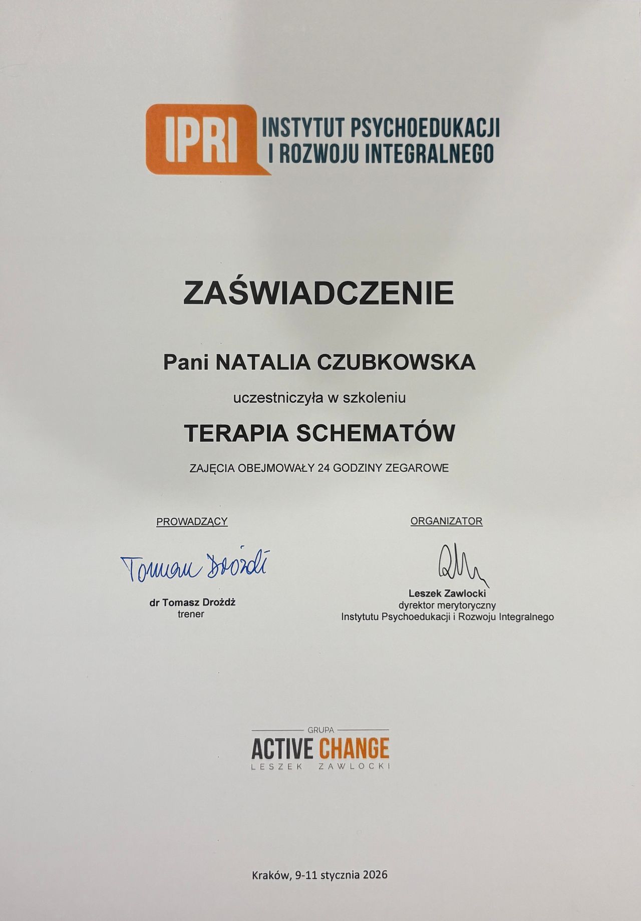 Pani Natalia jest osobą niezwykle empatyczną, kompetentną i zaangażowaną w swoją pracę. Potrafi stworzyć atmosferę pełną zaufania i zrozumienia, co ułatwia otwartą rozmowę i pracę nad sobą. Jej profesjonalizm i ciepłe podejście sprawiają, że każda wizyta wnosi realną wartość.