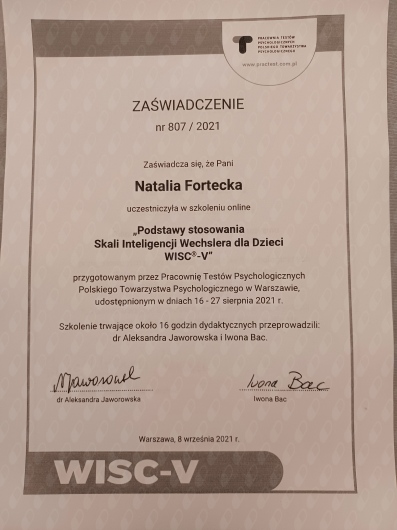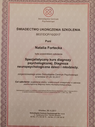 - Psycholog uprawniony do wykonywania badań w zakresie psychologii pracy - na liście psychologów w Dolnośląskim Centrum Medycyny Pracy,