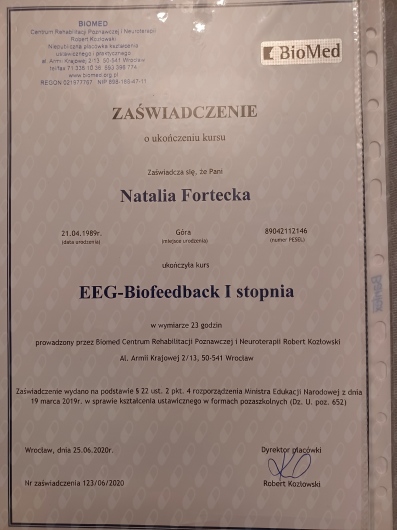- Szkolenie Biofeedback 1 i 2 stopnia,