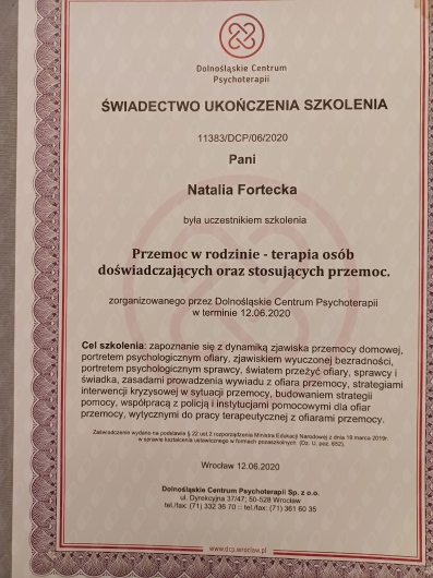 - Przemoc w rodzinie - terapia osób doświadczających oraz stosujących przemoc,