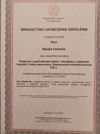- Diagnoza i psychoterapia dzieci i młodzieży z objawami depresji i niską samooceną. Zastosowanie kwestionariusza CDI2,
