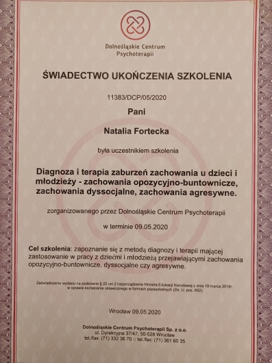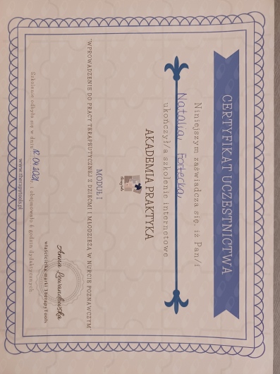 - Szkolenie certyfikowane z zakresu mediacji szkolnych i rówieśniczych,