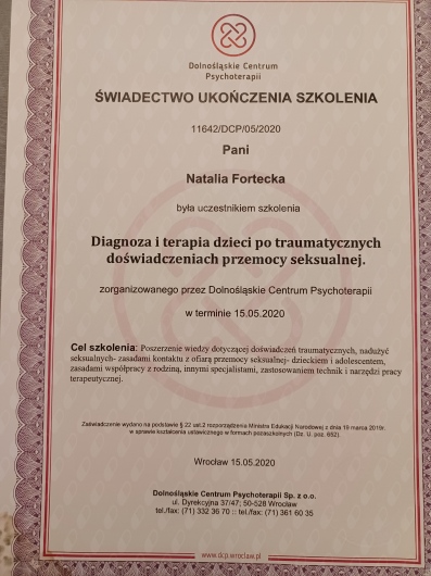 - Diagnoza i terapia dzieci po traumatycznych doświadczeniach przemocy seksualnej,