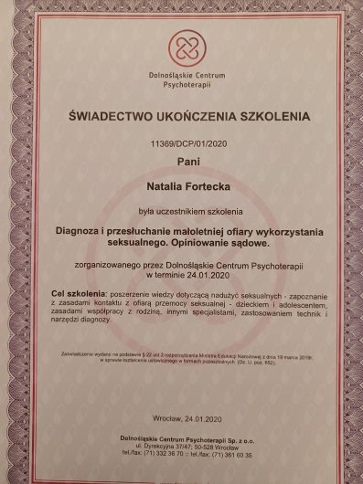 - Psycholog uprawniony do badania osób kierujących pojazdami, ewidencjonowany przez Marszałka województwa dolnośląskiego,