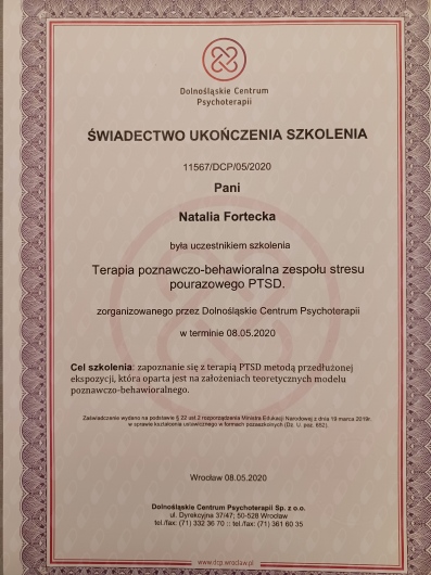 - Terapia poznawczo-behawioralna zespołu stresu pourazowego PTSD,