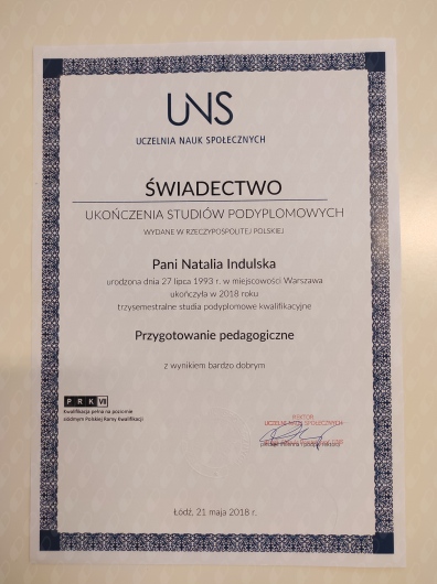 Pani Natalia jest bardzo uważna, zaangażowana i wyciąga trafne wnioski. Zaczęłam zauważać poprawę współpracując z nią.
