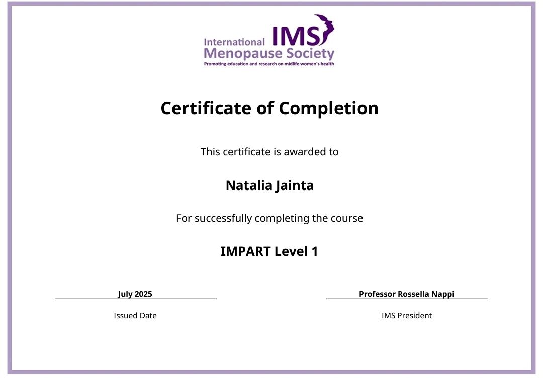 Posiadam certyfikat International Menopause Society i z ogromnym zaangażowaniem wspieram kobiety w okresie okołomenopauzalnym. Prowadzę ciąże, leczę schorzenia ginekologiczne, a w gabinecie zawsze znajdzie się miejsce na rozmowę – nie tylko o ginekologii!