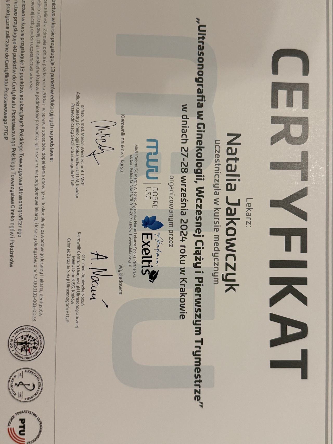 Jaki jest zakres porad oferowanych przez Natalia Jakowczyk?Natalia Jakowczyk to ginekolog. Na podstawie swojego doświadczenia i wykształcenia Natalia Jakowczyk oferuje usługi takie jak: konsultacja ginekologiczna, USG ginekologiczne przez powłoki brzuszne, konsultacja ginekologiczna + cytologia, konsultacja ginekologiczna + USG, konsultacja położnicza + USG, USG ciąży, USG miednicy mniejszej, założenie wkładki domacicznej Mirena, założenie wkładki domacicznej Kyleena, założenie implantu antykoncepcyjnego Implanon.