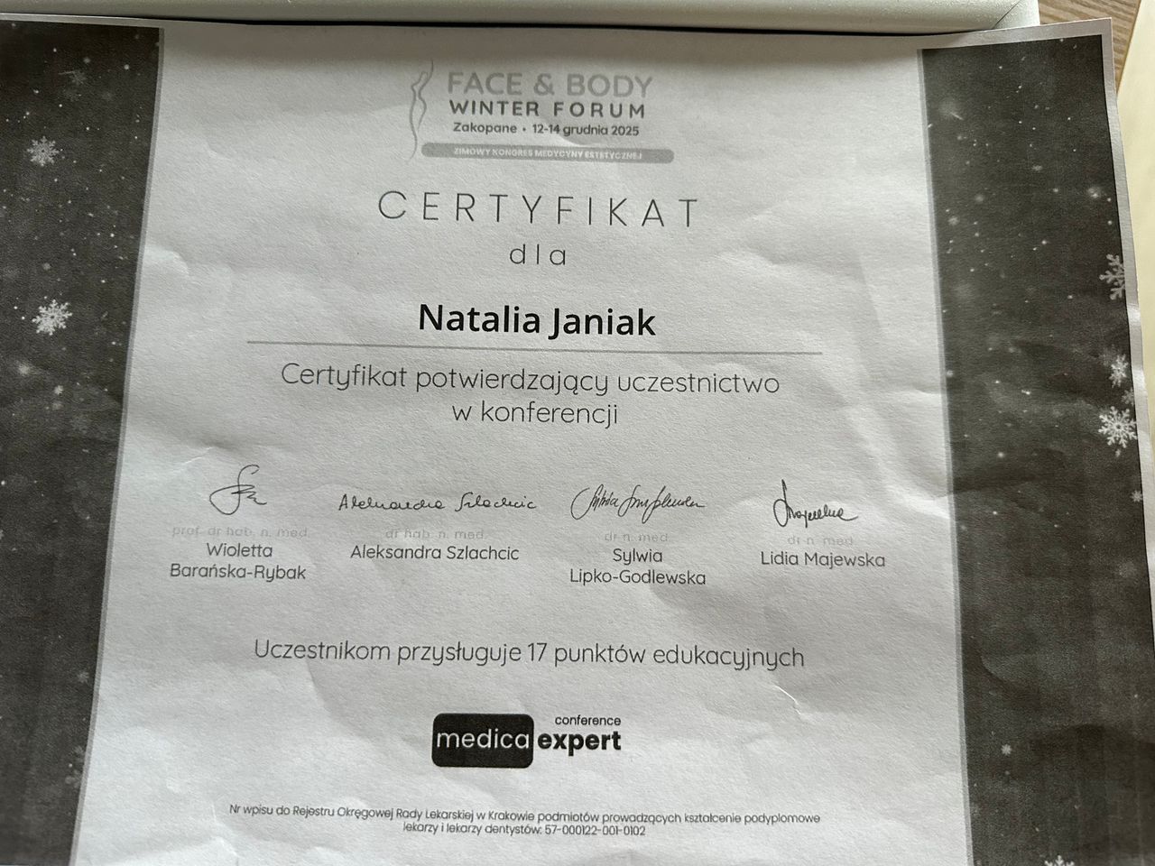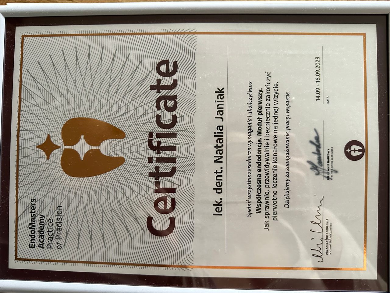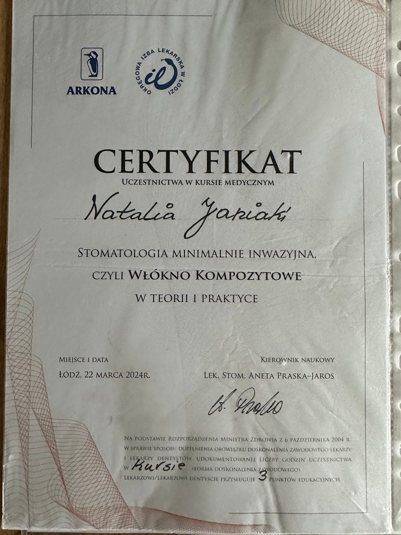 Jestem absolwentką kierunku lekarsko-dentystycznego na Uniwersytecie Medycznym w Łodzi, który ukończyłam w 2022r. Aktualnie jestem w trakcie specjalizacji z protetyki stomatologicznej. Obecnie aktywnie uczestniczę w licznych kursach z zakresu stomatologii zachowawczej z endodoncją, protetyki i periodontologii. W 2024 r. ukończyłam studia w Szkole Głównej Handlowej w Warszawie na kierunku zarządzenie biznesem medycznym, a w 2025r. ukończyłam dwuletnie studia na kierunku Medycyna Estetyczna na Warszawskim Uniwersytecie Medycznym. Od ponad roku regularnie szkolę się w tym zakresie na licznych kursach i warsztatach. W pracy cenię holistyczne i indywidualne podejście do każdego pacjenta. Zajmuję się głównie protetyką, stomatologią zachowawczą, pedodoncją oraz periodontologią.