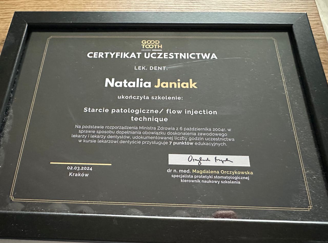 Jesteś już po wizycie u lek. dent. Natalia Janiak? Daj znać, co myślisz. Inni pacjenci będą wdzięczni za pomoc w wyborze najlepszego specjalisty.