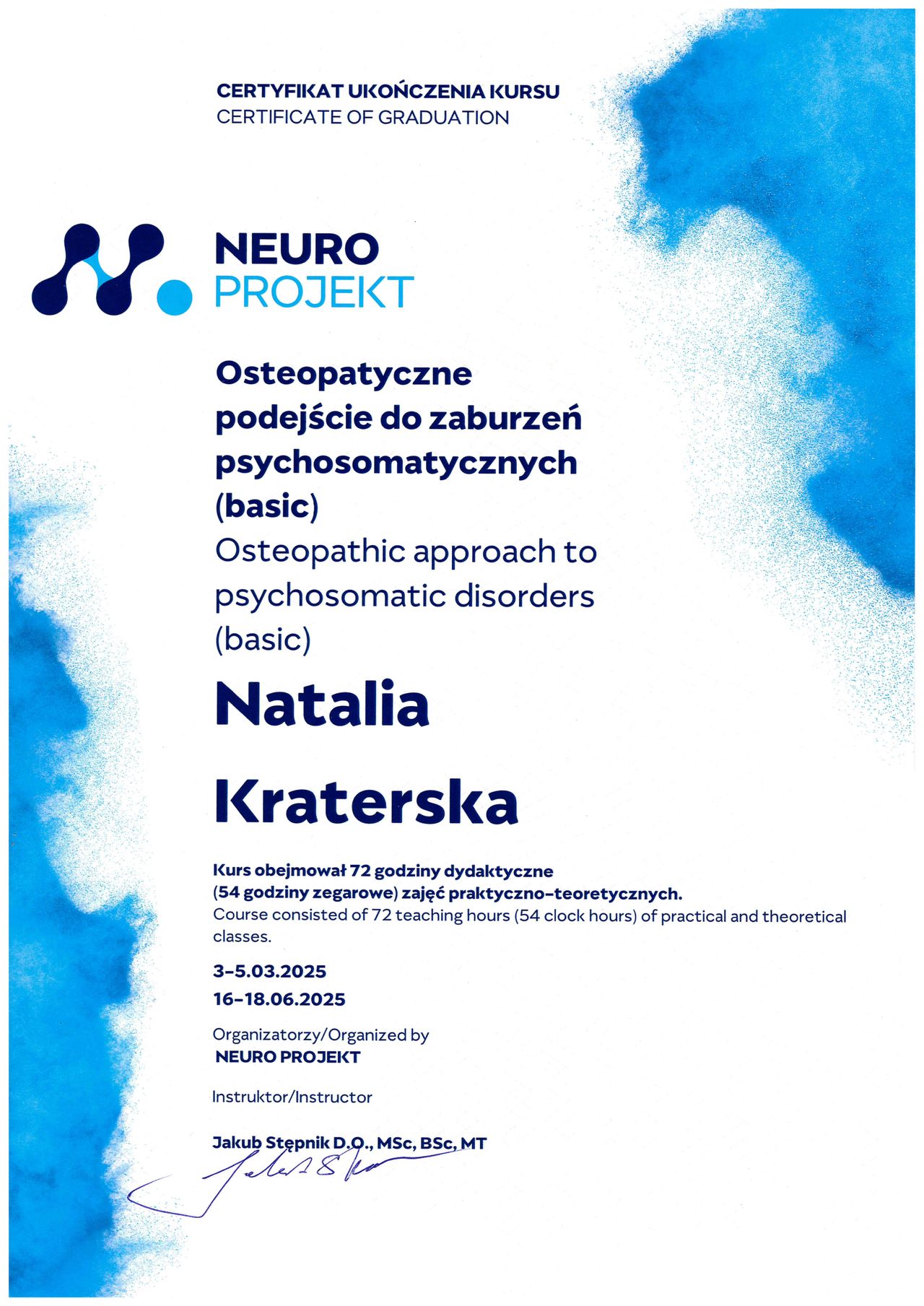 Przyszłam do Pani Natalii z nawracającymi bólami głowy, terapia z Panią Natalia bardzo mi pomogła, bardzo dziękuję i serdecznie polecam
