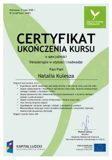 Jestem bardzo zadowolony z wizyty u pani Natalii. Jadłospis został mi dokładnie wyjaśniony a sama wizyta odbyła się w przyjemnej atmosferze.