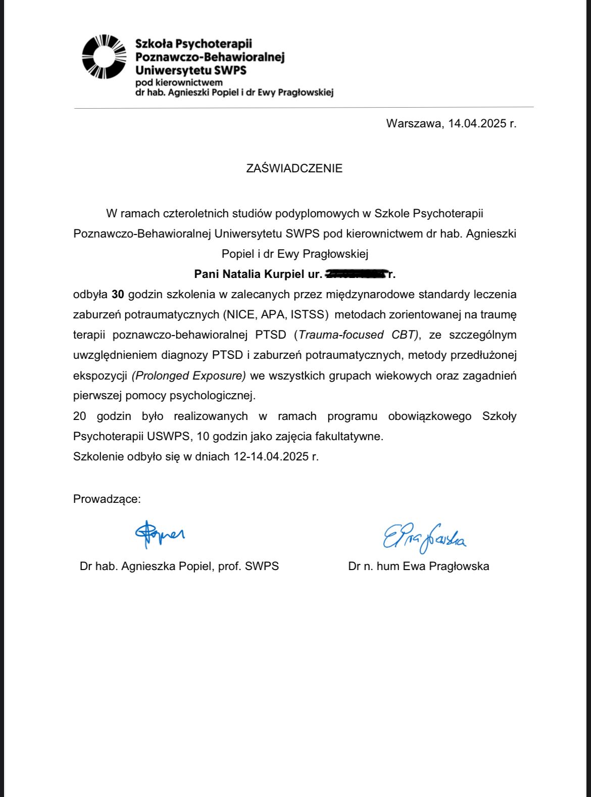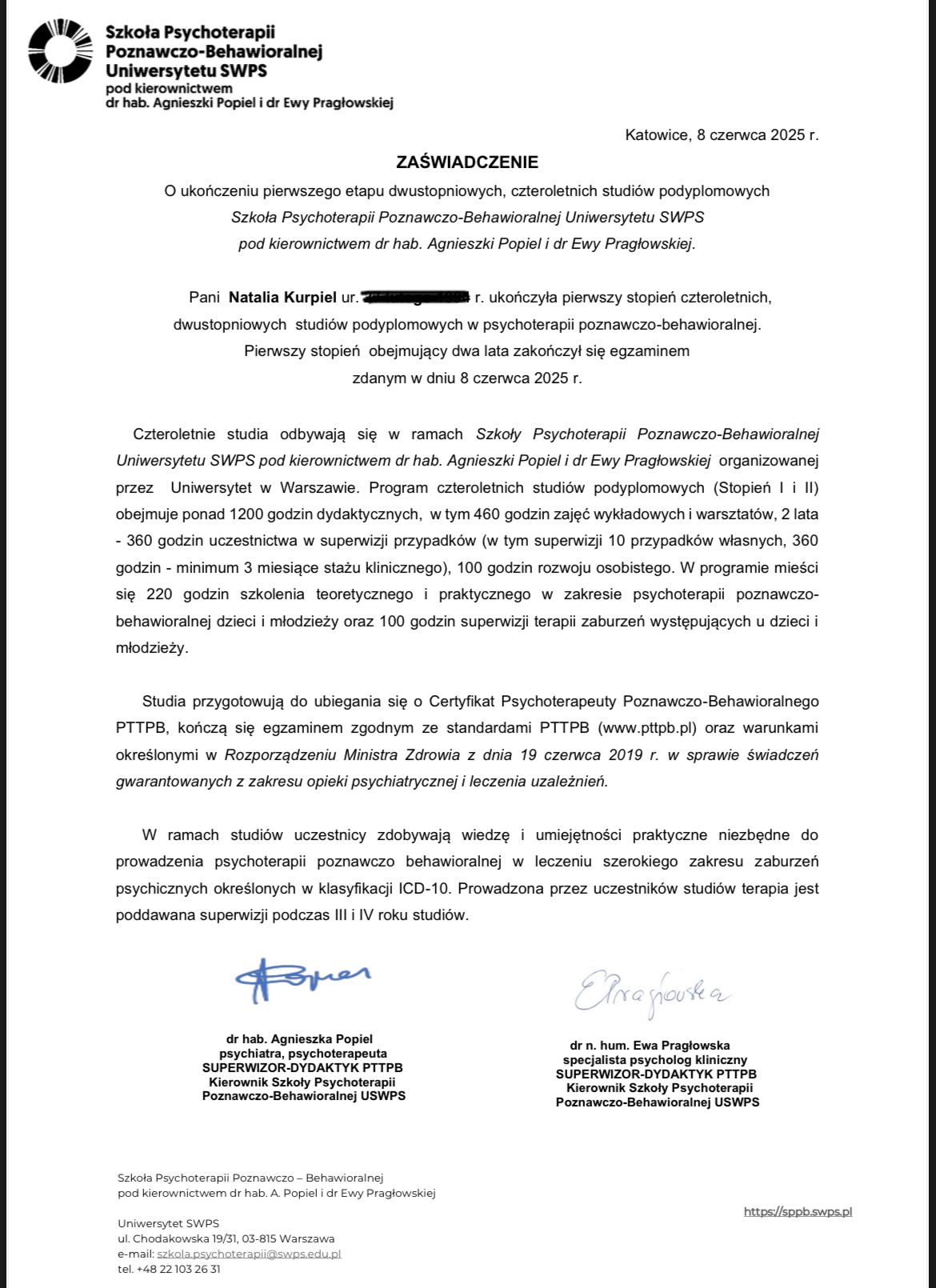 Jestem w trakcie szkolenia z terapii poznawczo-behawioralnej (CBT), co pozwala mi łączyć podejście farmakologiczne z elementami pracy terapeutycznej. Dzięki temu leczenie ma charakter bardziej całościowy – obejmuje zarówno ciało, jak i sposób myślenia, emocje oraz codzienne nawyki.