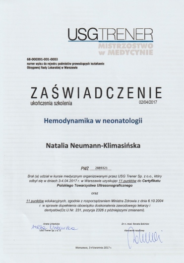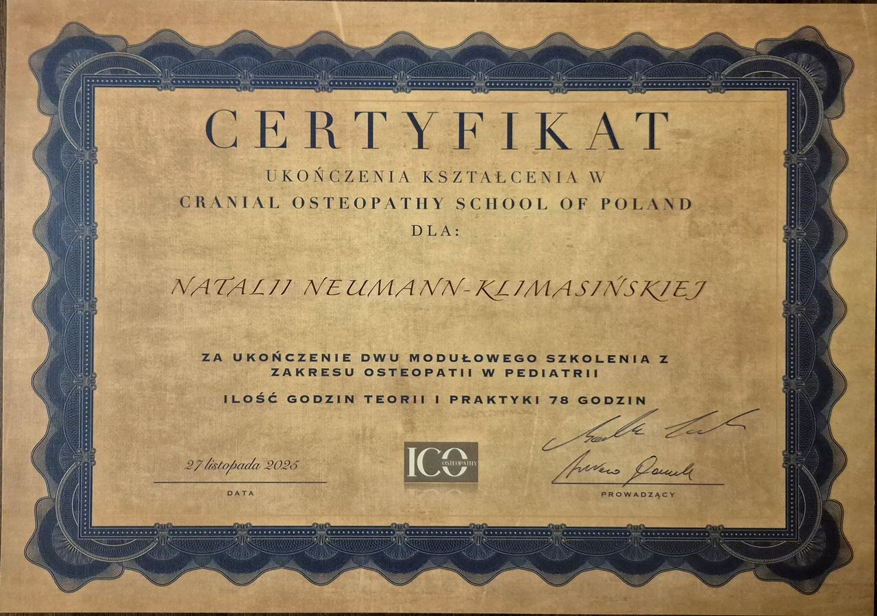 Jaki jest zakres porad oferowanych przez Natalia Neumann-Klimasińska?Natalia Neumann-Klimasińska to neonatolog, ultrasonografista, osteopata. Na podstawie swojego doświadczenia i wykształcenia Natalia Neumann-Klimasińska oferuje usługi takie jak: Konsultacja neonatologiczna, konsultacja neonatologiczna + USG, Konsultacja neonatologiczna + USG jamy brzusznej (do 1 roku życia), Konsultacja neonatologiczna + USG przezciemiączkowe, USG neonatologiczne z interpretacją badania, wizyta domowa 60-90 min. do 30 km.