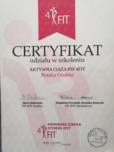 Mam bogate doświadczenie w pracy ze sportowcami (biegacze, piłkarze ręczni, sportowcy, sztuk walki) i muzykami, pracowałam również z tancerzami w Operze Bałtyckiej w Gdańsku w zakresie tańca klasycznego i nowoczesnego. Prowadziłam zajęcia z ciężarnymi „Aktywne 9 miesięcy”, a także rehabilitację osób starszych i po operacjach.