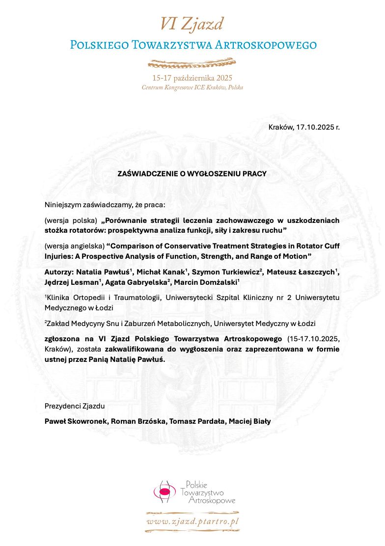 Jestem fizjoterapeutką specjalizującą się w rehabilitacji ortopedycznej, szczególnie w leczeniu urazów barku, kolana i kręgosłupa. Na co dzień pracuję na Uniwersytecie Medycznym w Łodzi, gdzie prowadzę zajęcia dydaktyczne oraz badania naukowe.