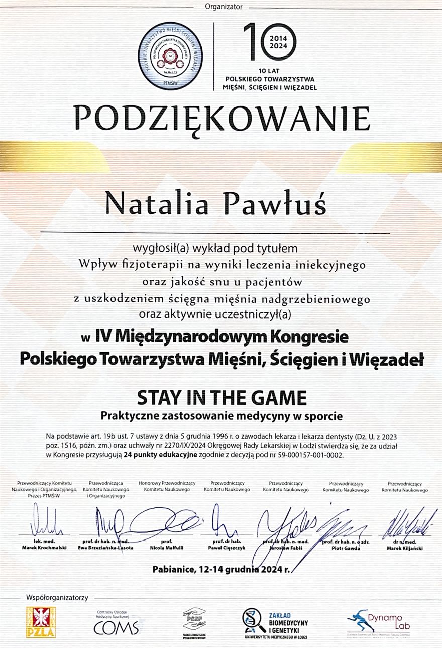 Poznając P. Prof. Marcina Domżalskiego, P. Mgr. Natalię Pawluś i Dr. Michała Kanaka nie byłem w stanie samodzielnie funkcjonować z powodu bolących barków. Dzięki prowadzonemu przez nich programowi, dzisiaj po 9-ciu miesiącach jest już normalnie, zawdzięczam to w dużej mierze P. Natalii która reprezentuje swoją osobą profesjonalizm zawodu magistra fizjoterapeuty tego jak potrafi tłumaczyć dane ćwiczenia i motywować do systematyczności ich powtórzeń. Efekty były już po 30-tu dniach. Dzięki Pani Natalii wróciłem do normalnego życia. Dziękuję i życzę wielu sukcesów osobistych i zawodowych.• Przychodnia SPORTO • Inny •