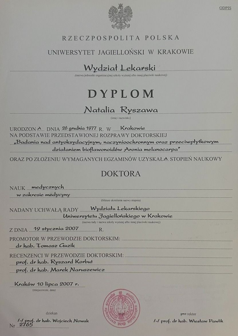 •Doktor Nauk Medycznych