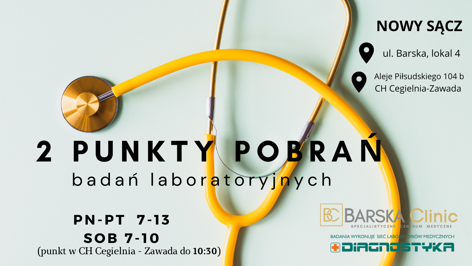 Punkt pobrań badań laboratoryjnych w obu placówkach jest czynny od PON do PT w stałych godzinach między 7.00-13.00, oraz w SOBOTY od 7.00-10.00 (punkt w Zawadzie do 10:30).