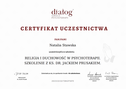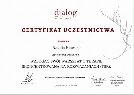 Pani Natalia to świetny terapeuta! Pełne zaangażowanie, empatia, profesjonalizm. Polecam z całego serca