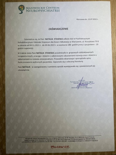 Czy Natalia Stawska przyjmuje online, bez konieczności pojawiania się w placówce?Nie, w tym momencie Natalia Stawska nie oferuje konsultacji online.