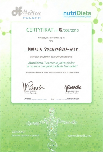 Jestem dietetykiem, inżynierem agrobiznesu i rolnictwa ekologicznego, magistrem towaroznawstwa o specjalności usługi żywieniowe i dietetyka.