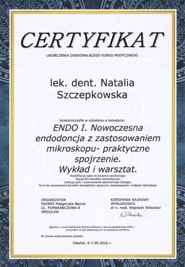 Po 1. leczeniu kanałowym nie mam już problemów z zębem z którym męczyłam się okresowo od miesięcy.