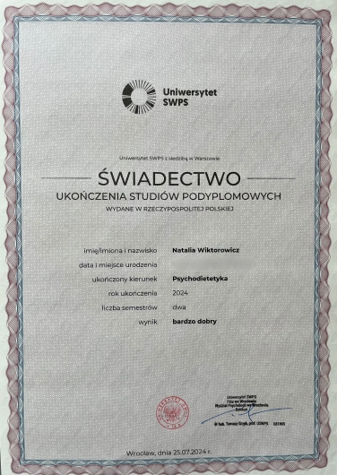 Jestem ogromnie wdzięczna za ten czas i zdecydowanie polecam panią Natalię każdemu, kto szuka mądrej, wspierającej i zaangażowanej specjalistki.