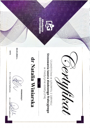 Absolwentka Wydziału Lekarskiego Warszawskiego Uniwersytetu Medycznego. Dyplomowany Lekarz Medycyny Estetycznej. Autorka publikacji naukowych z zakresu medycyny estetycznej, chirurgii plastycznej i okulistyki. Nieustannie poszerza swoją wiedzę uczestnicząc w szkoleniach oraz konferencjach naukowych. Wykonuje zabiegi regeneracyjne, które skupiają się na poprawie jakości skóry, przywróceniu jej zdrowego wyglądu i blasku. Stawia na subtelne, naturalne rezultaty, które podkreślają indywidualne piękno pacjenta.