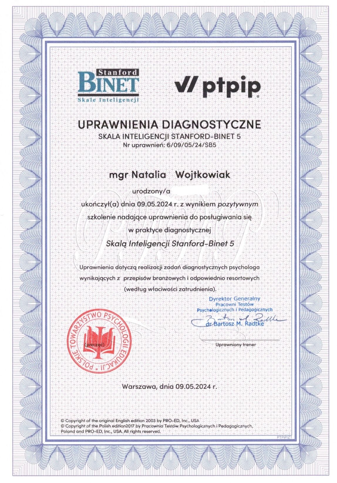 Diagnoza inteligencji (dorośli i dzieci) - Stanford-Binnet 5