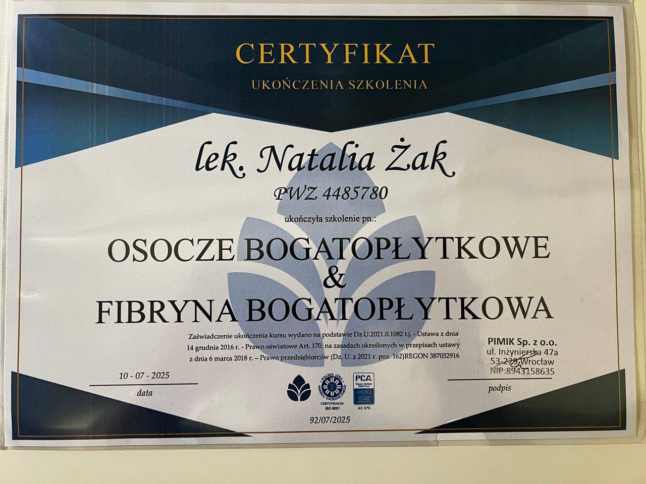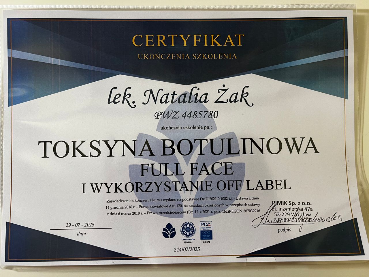 Nr PWZ: 4485780
