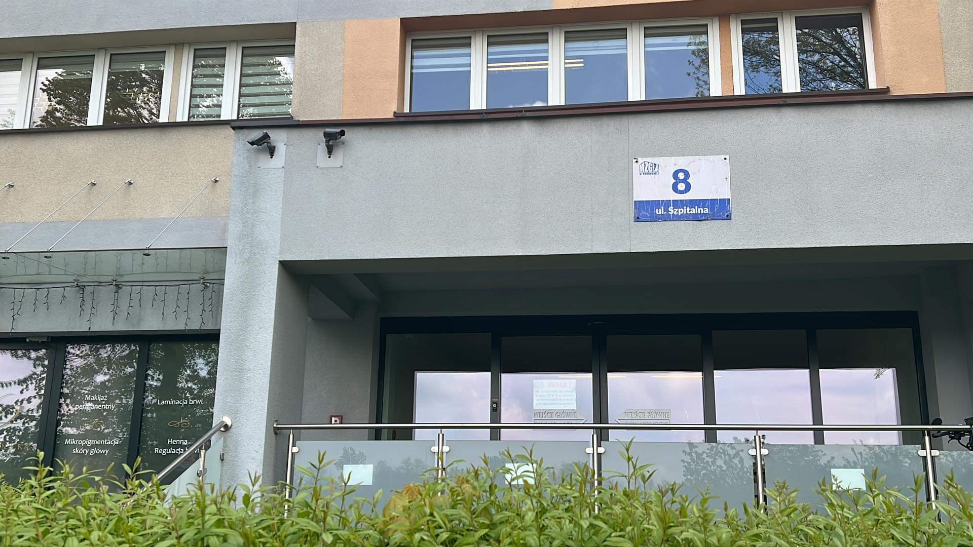 Wjazd drugim szlabanem. Na domofonie naciśnij słuchawkę. Szlaban się otworzy. Parking jest darmowy. 3 piętro winda lokal 309 na końcu korytarza.