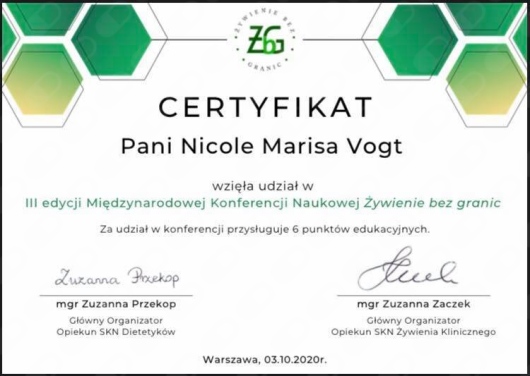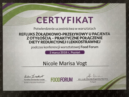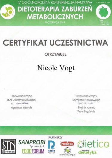 Z całego serca polecam Panią Nicole przede wszystkim jeśli chodzi o współpracę z dziećmi. Poszłam z moim synem, który przy nietolerancji glutenu i białka mleko krowiego a dodatkowo wybiórczości pokarmowej potrzebował zrzucić kilogramy. Rozmowa z Panią Nicole o tym, jak wygląda chudnięcie dzieci, że to zupełnie inny proces niż w przypadku dorosłych otworzyło mi oczy, a efekty przyszły już miesiąc po pierwszej wizycie. Dodajmy do tego, że wyczarowała jadłospis z kilku produktów, a każdy posiłek był inny. Jestem niezwykle wdzięczna, że trafiliśmy pod opiekę Pani Nicole a jeszcze bardziej cieszę się widząc, jak moje dziecko chudnie i wraca do zdrowia.