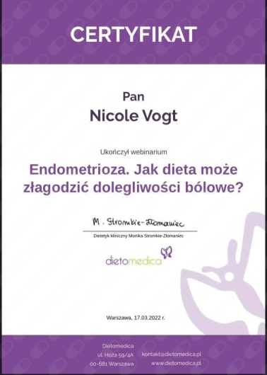 Bardzo dziękuję Pani Nicole za całe okaze mi wsparcie i świetne podejście podczas mojego leczenia. Dzięki Pani w końcu zaczęłam czuć się lepiej, a dieta została dopasowana dokładnie do tego, czego potrzebuję przy mojej przypadłości. Czuję, że ktoś naprawdę mnie słucha i prowadzi z troską. Jestem ogromnie wdzięczna i szczerze polecam.