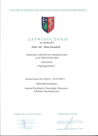 • Nina Gawdzik-Chrobot • konsultacja psychiatryczna (kolejna wizyta) •