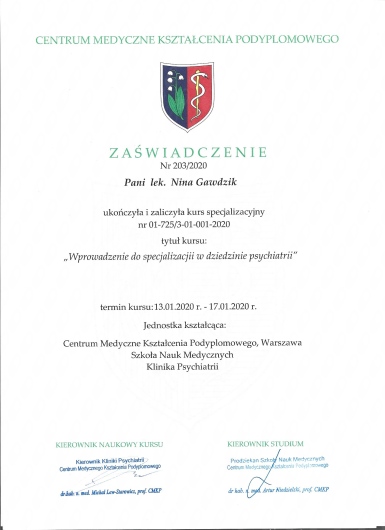 • Nina Gawdzik-Chrobot • konsultacja psychiatryczna •