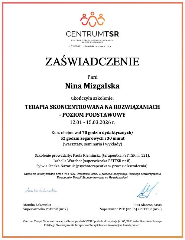 Prowadzę również profil psychoedukacyjny na platformie Instagram - @ninamizgalska.psycholog, gdzie mogą mnie Państwo poznać lepiej!