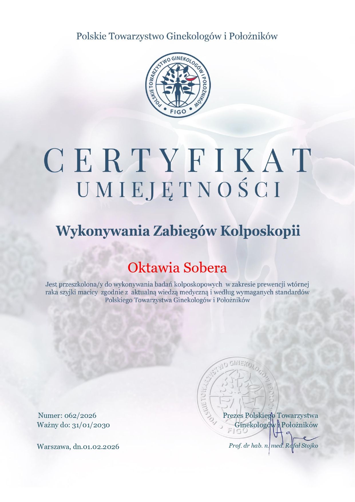 Tytuł specjalisty uzyskałam w 2018 r. Doświadczenie zawodowe to kilkuletnia rezydentura odbywana zarówno w Szpitalu "Latawiec" w Świdnicy, jak i w SSGP w Wałbrzychu. To tutaj zdobyłam doświadczenie w zakresie patologii ciąży oraz ginekologii zachowawczej i operacyjnej.