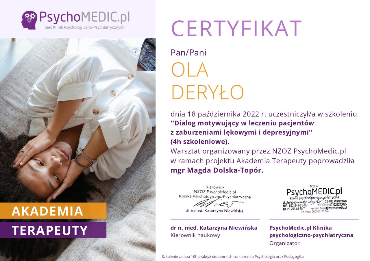 Gdzie Ola Deryło ma swój gabinet?Ola Deryło przyjmuje pod adresem: