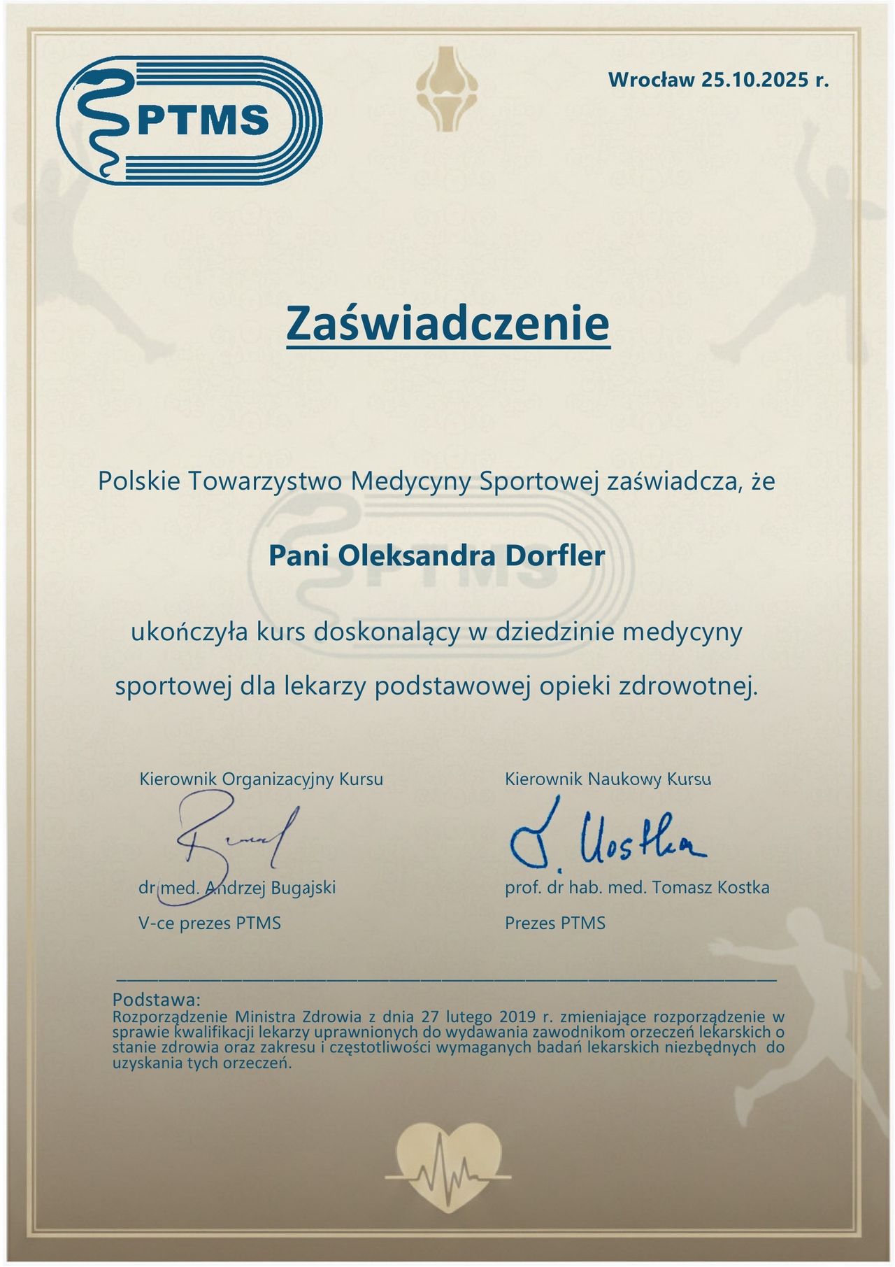 Jaki jest zakres porad oferowanych przez Oleksandra Dorfler?Oleksandra Dorfler to lekarz rodzinny. Na podstawie swojego doświadczenia i wykształcenia Oleksandra Dorfler oferuje usługi takie jak: konsultacja internistyczna, konsultacja pediatryczna, orzeczenie o stanie zdrowia medycyna sportowa.