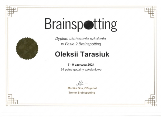Psychologia to moje powołanie, miłość i pasja. Jestem magistrem psychologii, mam dwa wykształcenia wyższe psychologiczne otrzymane w Ukrainie i w Polsce. Uczestniczę w szkoleniu przygotowującym do certyfikacji w nurcie CBT i Terapii Schematów. Jestem również certyfikowanym konsultantem kryzysowym, certyfikowanym terapeutą Brainspotting, certyfikowanym trenerem umiejętności społecznych, certyfikowanym instruktorem samoobrony, trenerem Tai-Chi, Quigong i instruktorem medytacji. Swoje wieloletnie doświadczenie zdobywałem pracując w międzynarodowej firmie na stanowiskach kierowniczych, zajmując się zarządzaniem zasobami ludzkimi oraz zarządzaniem talentami, również podczas stażu w PsychoMedic oraz na Oddziale Dziennym Psychiatrycznym w Centrum Psychiatrii ANIMA w Kołbuszowej. Zajmuję się również wspieraniem ofiar wojny (w tym wojny w Ukrainie). Posiadam doświadczenie w pracy z lękiem, depresją, kryzysem psychologicznym, traumą, uzależnieniami, zaburzeniami odżywiania, zaburzeniami psychotycznymi i zaburzeniami osobowości, nerwicą, wypaleniem emocjonalnym. Oprócz podwójnego wykształcenia psychologicznego posiadam również matematyczne. Psychologią zajmuje się ponad 15 lat i ciągle się uczę, podwyższając swój zakres wiedzy i poziom kompetencji. Publikuję artykuły w czasopismach naukowych na temat psychologii. Do konsultowanie i terapii psychologicznej podchodzę holistycznie, łącząc w całość metody terapii poznawczo-behawioralnej, terapii schematów, oraz techniki orientowane na ciało - mindfulness, terapia traumy metodą brainspotting, techniki relaksacyjne. Stosuję również metody psychoterapii dialektyczno-behawioralnej oraz terapii ACT. Dzięki dużemu doświadczeniu życiowemu, uważności, empatii i wiedzy udzielam profesjonalnej pomocy nawet w najbardziej skomplikowanych i rzadko spotykanych sytuacjach. Główne zasady mojej pracy to: • Wiara w zdolności klienta; • Prawdziwa empatia jako chęć i zdolność współczucia i zrozumienia; • Stosowanie najlepszych metod z naukowo udowodnioną skutecznością; • Wspólne wyznaczanie priorytetów i poszukiwanie najlepszych rozwiązań; • Indywidualne podejście do każdego klienta; • Otwartość, elastyczność i twórczość. Zapraszam do spotkania, jeżeli zmagasz się z: • Kryzysem psychologicznym, stresem, trudną sytuacją życiową; • Wypaleniem emocjonalnym; • Nadmiernym niepokojem, lękiem, fobią, atakami paniki; • depresją; • traumą psychologiczną; • zaburzeniami osobowości; • uzależnieniami od Internetu, pornografii, jedzenia, tytoniu itp. • nerwicą; • poczuciem winy lub wstydu, żalem, obrazą, gniewem, agresją; • zaniżoną samooceną; • problemami w relacjach z innymi ludźmi; • samotnością, brakiem sensu w życiu; • trudnościami w sferze komunikacji, radzeniu sobie z emocjami, podejmowaniu decyzji; • problemami w wychowaniu dzieci. Mój gabinet to strefa poufności, komfortu i bezpieczeństwa, gdzie w atmosferze miłości i bezwarunkowej akceptacji możesz śmiało podzielić się swoimi problemami, licząc na poprawne zrozumienie i kompetentne wsparcie. Pracuję zgodnie z etyką zawodową. Jestem członkiem Polskiego Towarzystwa Terapii Poznawczo-Behawioralnej oraz Polskiego Towarzystwa Psychiatrycznego. Swoją pracę poddaję systematycznej superwizji certyfikowanego superwizora CBT. Chętnie Ciebie wysłucham, zapraszam, Olek Tarasiuk