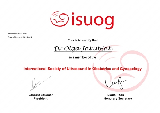 Członek ISUOG(International Society of Ultrasound in Obstetrics and Gynecology) i EEL (European Endometriosis League).